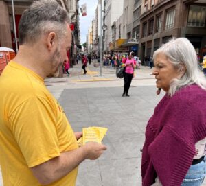 Para celebrar o Dia do Servidor Público, o Sintergs realizou, na manhã desta terça-feira (28/10), uma ação de panfletagem e diálogo com a população na Esquina Democrática, no centro de Porto Alegre.